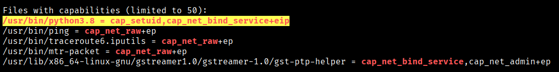 We ran LinPEAS and observed that python3 had Linux capabilities assigned to it.
