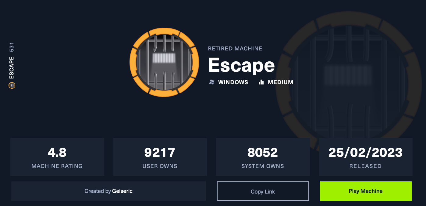 | Escape | Medium | Escape |