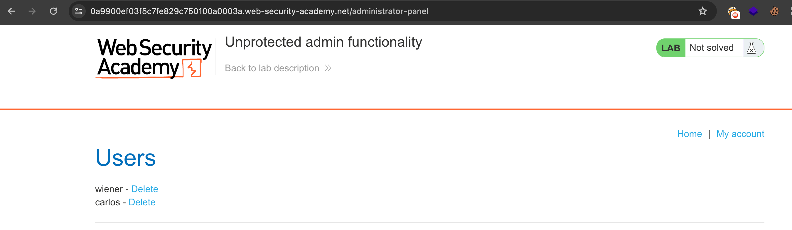 We were able to visit the Admin panel using that directory and delete the carlos user and solve the lab :