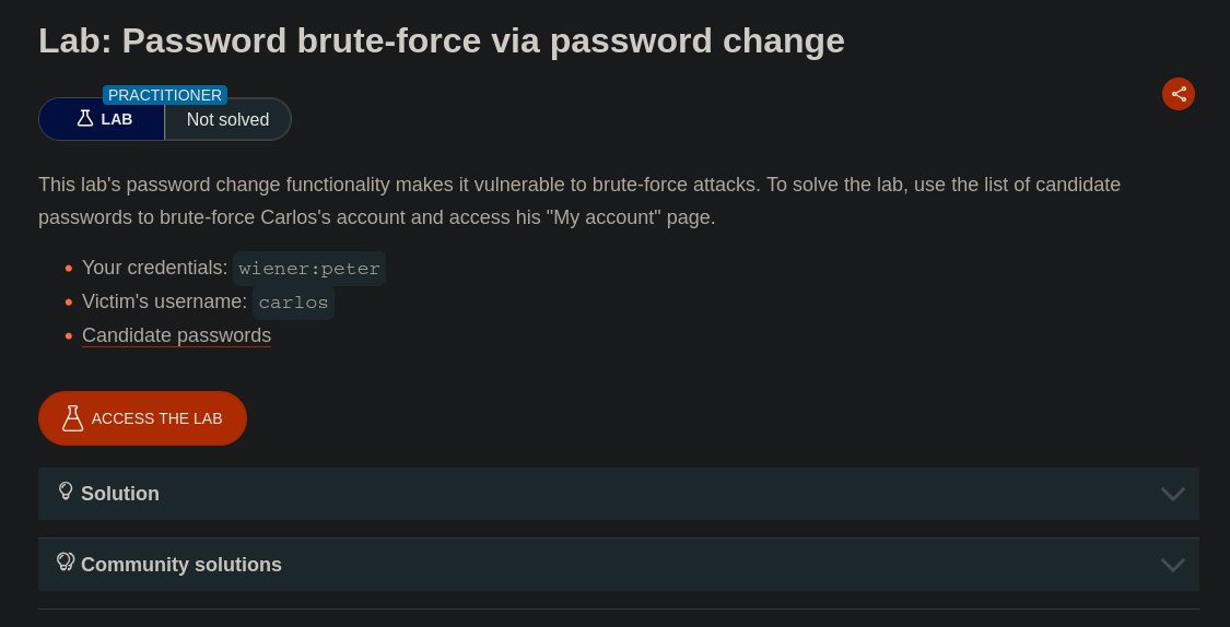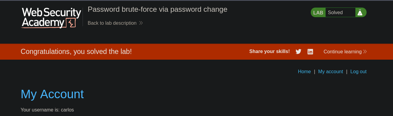 Using this password, we logged in as Carlos and successfully solved the lab: