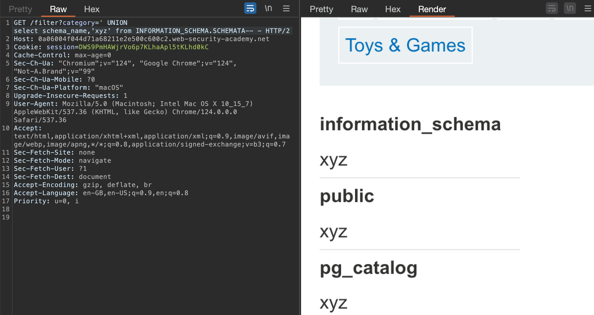 ' UNION select schema_name,'xyz' from INFORMATION_SCHEMA.SCHEMATA-- -