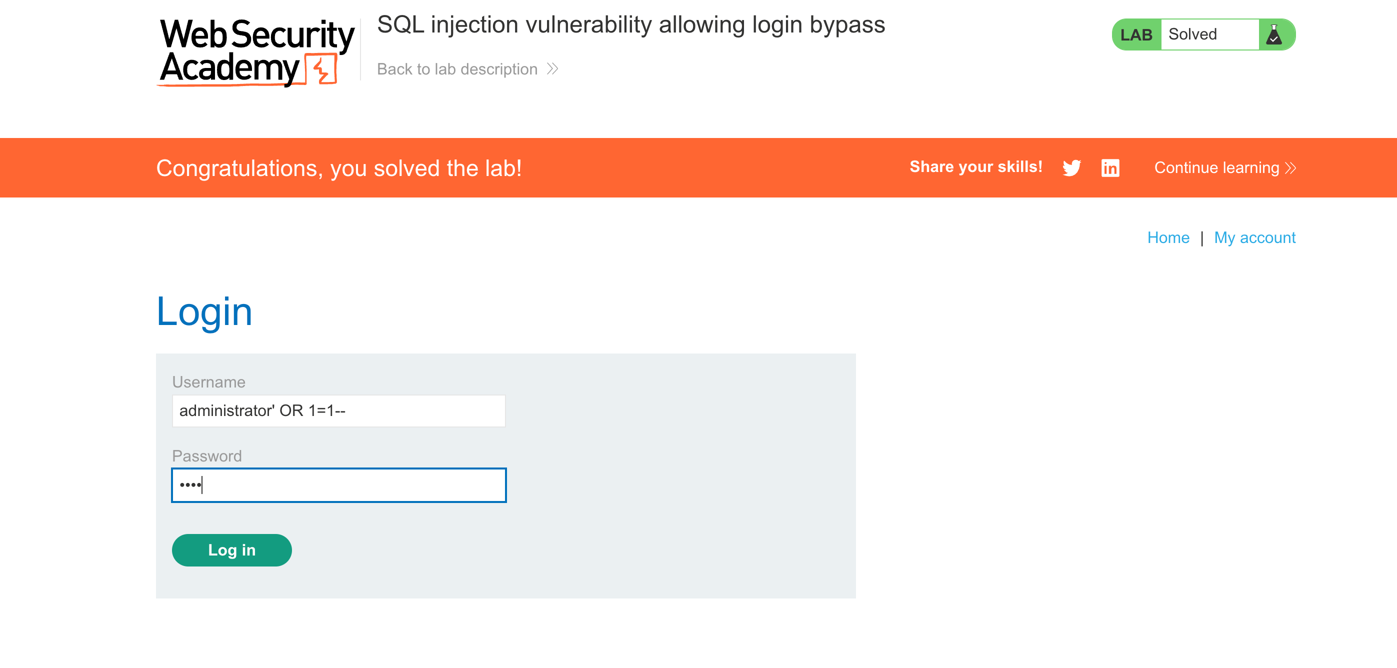 'administrator' OR 1=1--', which makes the WHERE clause always evaluate to true due to the condition1=1. - The rest of the query after the double hyphens