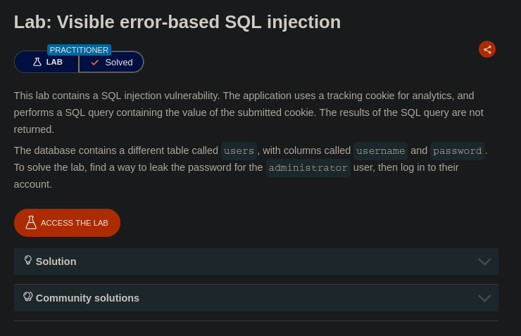 We then replaced username with password and were able to leak the administrator’s password, log in, and successfully solve the lab: