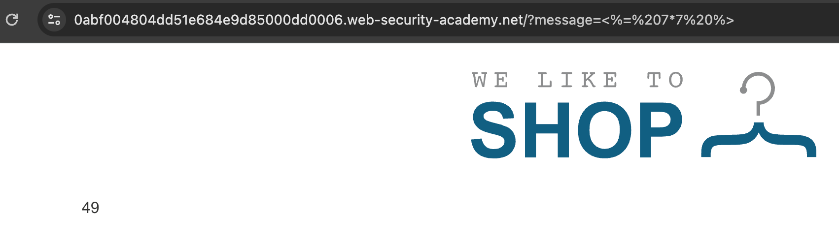 We used the payload <%= 7*7 %> and was able to see that this page is vulnerable to SSTI (Server-Side Template Injection) because we got the output as 49 :