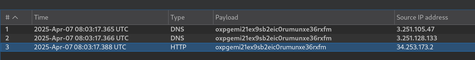 After polling the collaborator, we were able to see the DNS and HTTP requests, confirming the vulnerability.