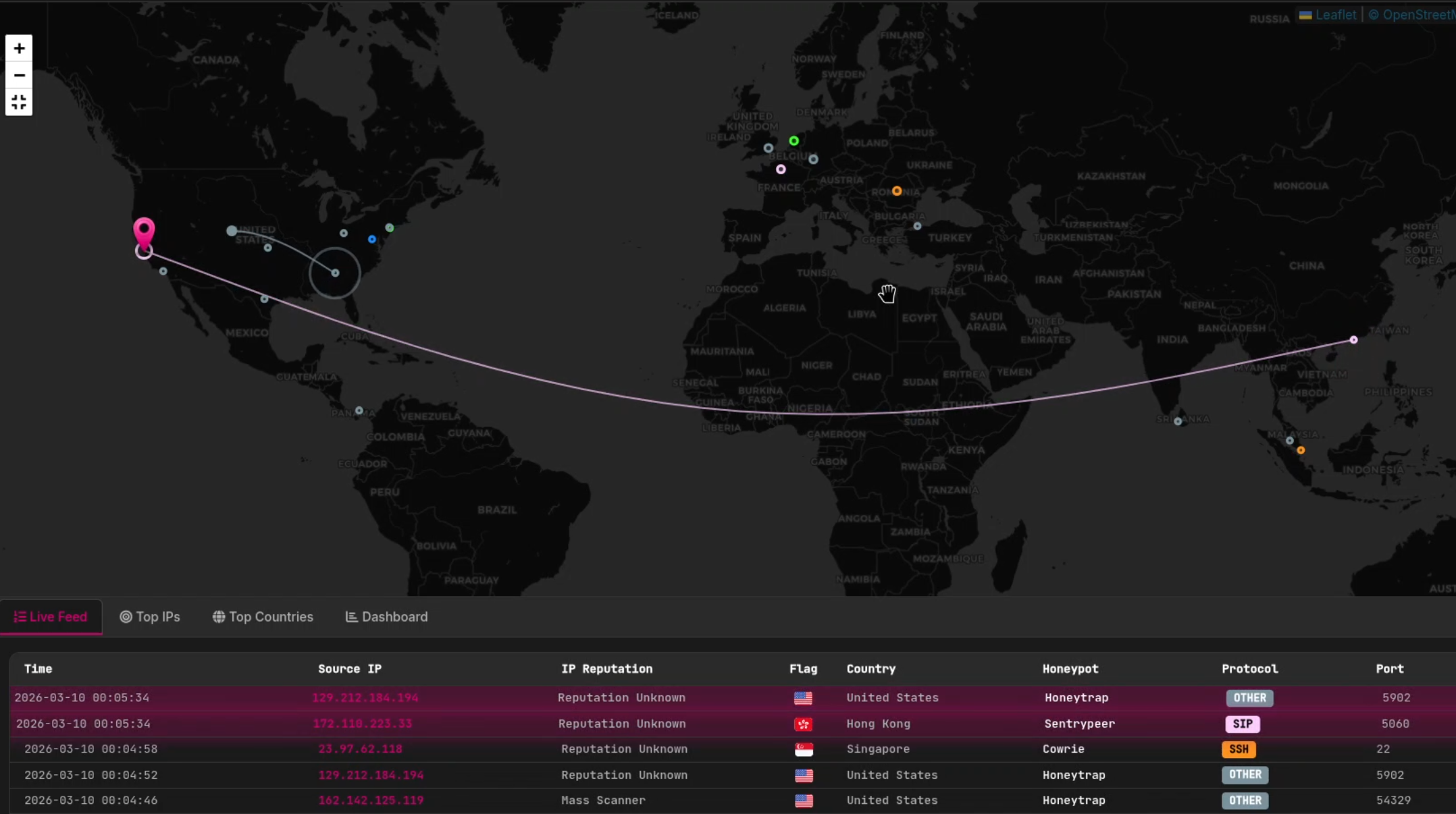 - Attack Map: A live and dynamic map showing where the attacks are coming from.