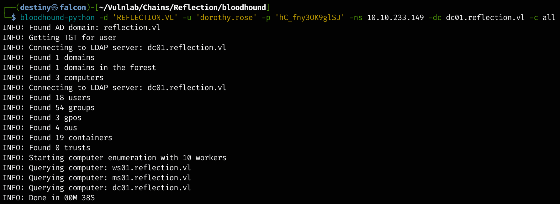 - Launched BloodHound-python to map the Active Directory (AD) network and enumerate more data.