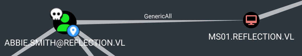 While looking at the imported BloodHound data, we were able to see that the Abbit.smith user had GenericAll permission for the ms01 host.
