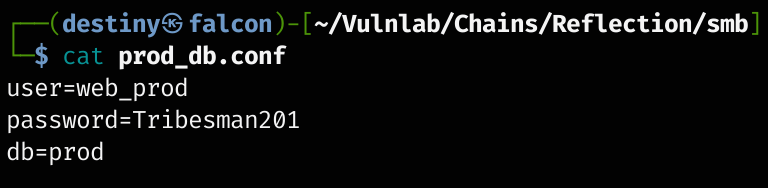 prod_db.conffile containing credentials for theweb_produser. - Logged into the MSSQL service of DC with