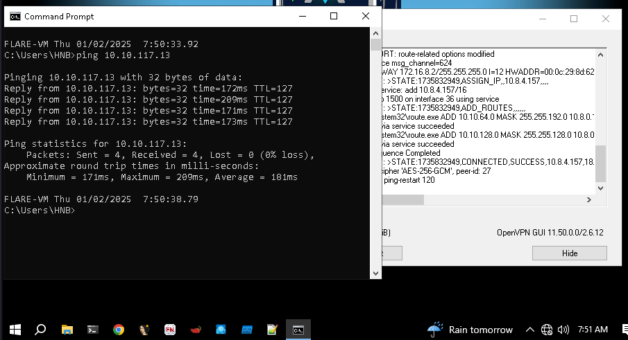 - Added a machine account by spinning up a Windows VM, connecting it to VulnLab’s VPN, setting the domain controller’s IP as the DNS server, and joining it to the domain.