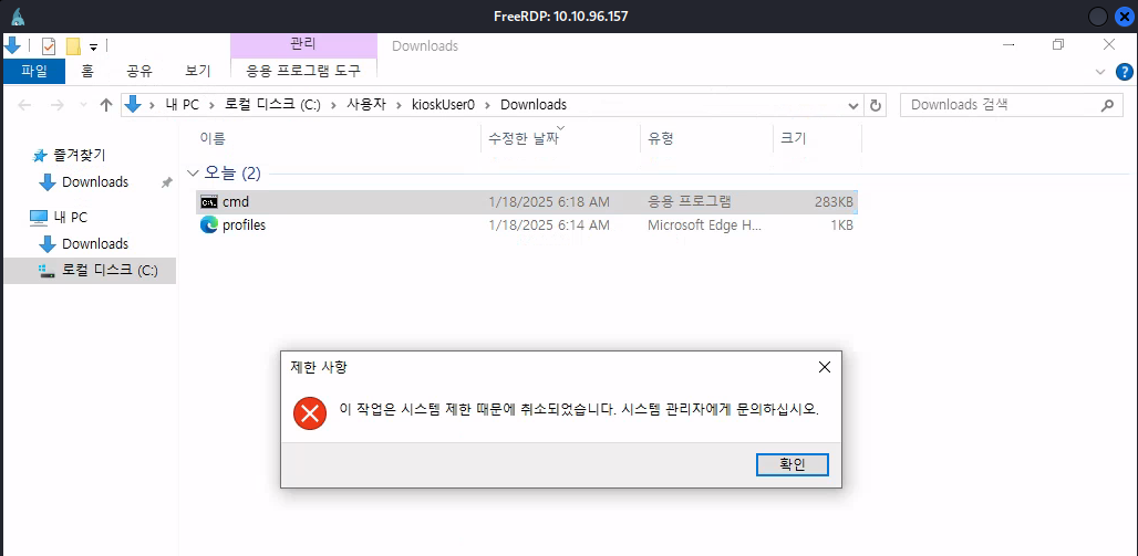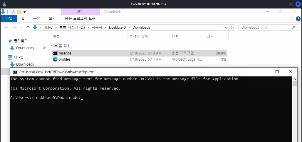 We also couldn’t rename the files by right-clicking, as right-click was disabled. However, we used the F2 key to rename the file to msedge and were able to execute cmd.