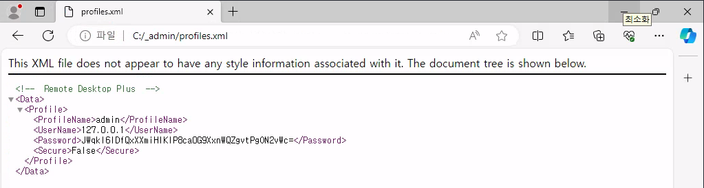 Enumerating the files in the _admin directory, we found a password in the profiles.xml file that was encrypted and belonged to the Remote Desktop Plus application.