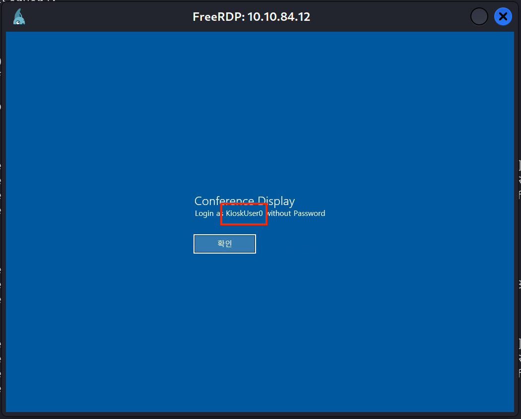 Could not login using a dummy credential .Using KioskUser0 username we found, we were able to login without any passwords and got this output :
