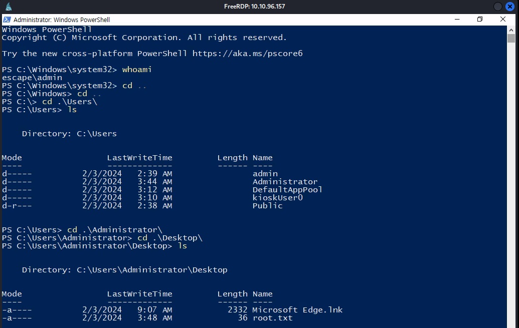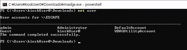- Bypassing kiosk mode by using Microsoft Edge to enumerate the file system.