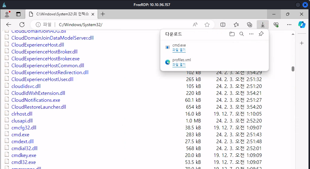 From Edge, we opened and saved the cmd.exe file, and were able to use Explorer to find it.