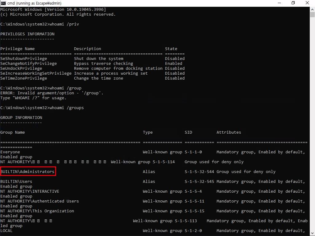 We used the runas command to spawn a shell as admin, but we did not get a system-level elevated shell.