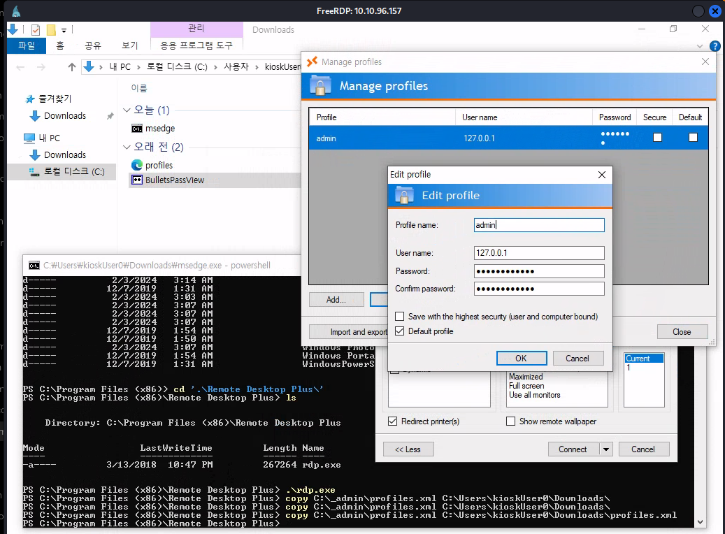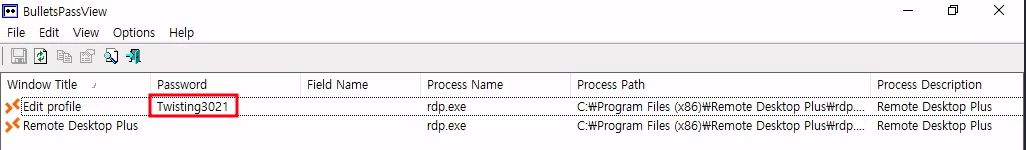From PowerShell, we executed the Remote Desktop Plus executable, copied the profiles.xml file to Downloads, and imported the config file. However, we found that the password was masked.