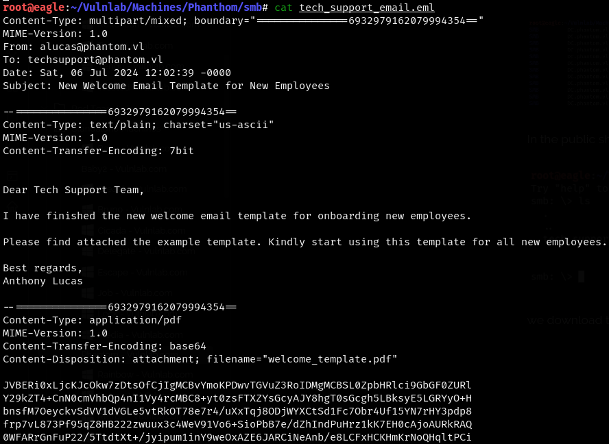 .emlfile containing a Base64-encoded PDF. - Decode the PDF and extract a password.