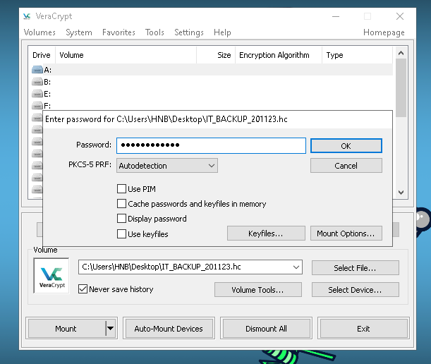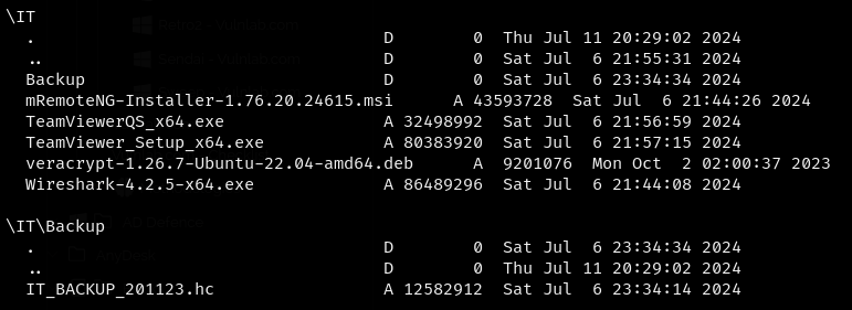 - Using the valid credentials, enumerate SMB shares again and locate a share containing a VeraCrypt encrypted backup drive.