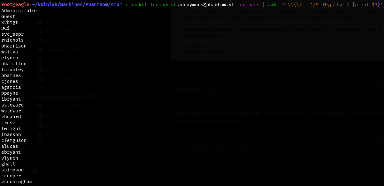 impacket-lookupsid anonymous@phantom.vl -no-pass | awk -F'\\\\| ' '/SidTypeUser/ {print $3}'