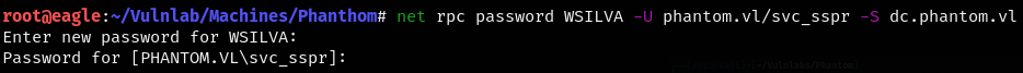 net rpc password WSILVA -U phantom.vl/svc_sspr -S dc.phantom.vl
