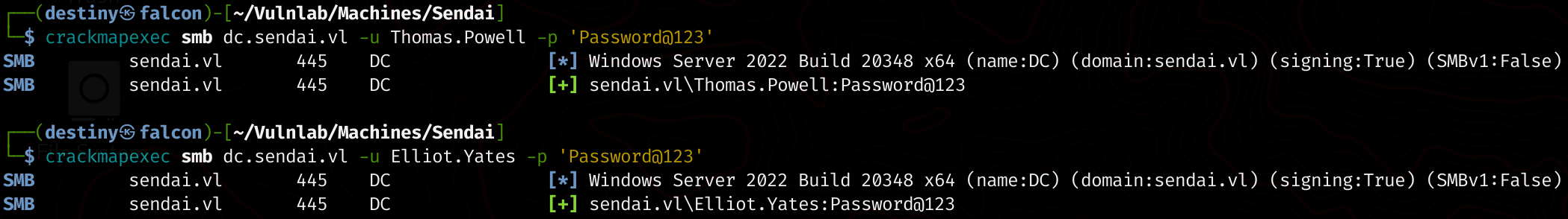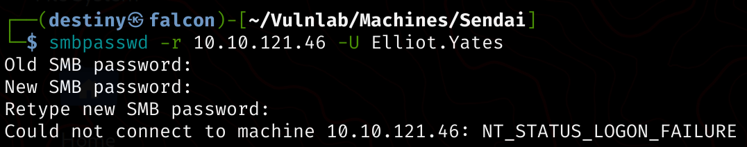 impacket-smbpasswd sendai.vl/Elliot.Yates@dc.sendai.vl -newpass 'Password@123'
