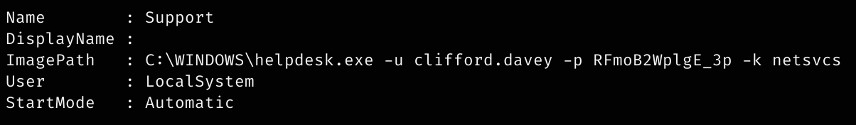 While checking the processes, we were able to see the credentials of the user clifford.davey being passed.